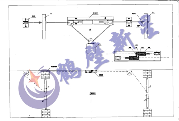 风门的开启关闭通过钢丝绳传递给对面风门的插销装置,阻止对面风门的开启。该联锁价格低廉,根据需要还可以增加语音报警。由于风门的“开启、关闭”信息是通过钢丝绳传递,所以两风门之间的距离不能过大,一般20m左右。